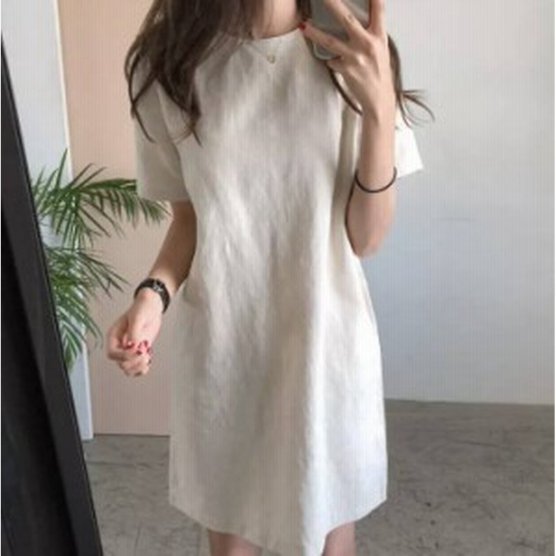 レトロ シンプル ナチュラル リネン 半袖 ワンピース 新作 19 通販 Lineポイント最大1 0 Get Lineショッピング